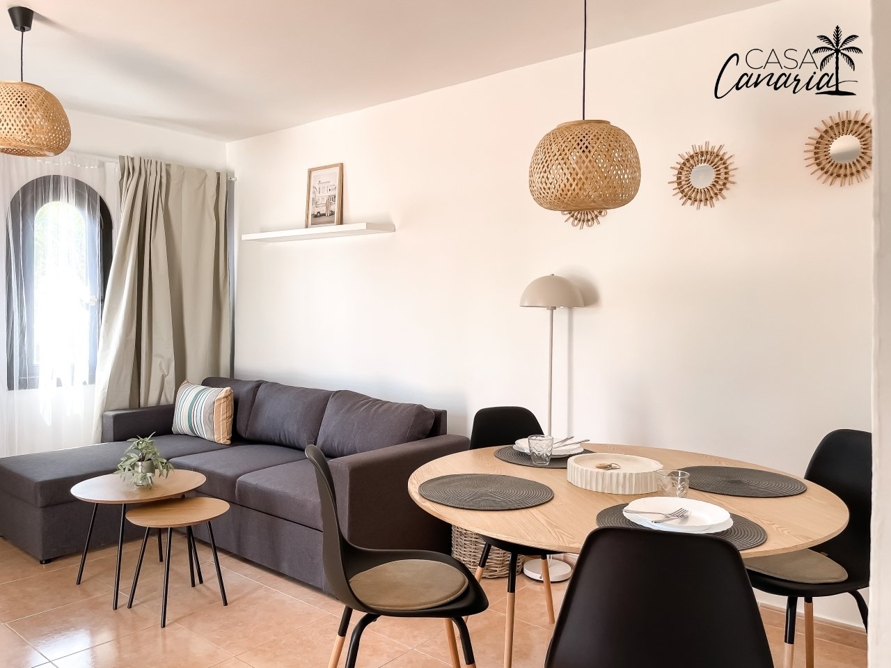 ideal para familias o grupos de hasta 4 personas. Decorado en un estilo boho natural con toques tropicales.